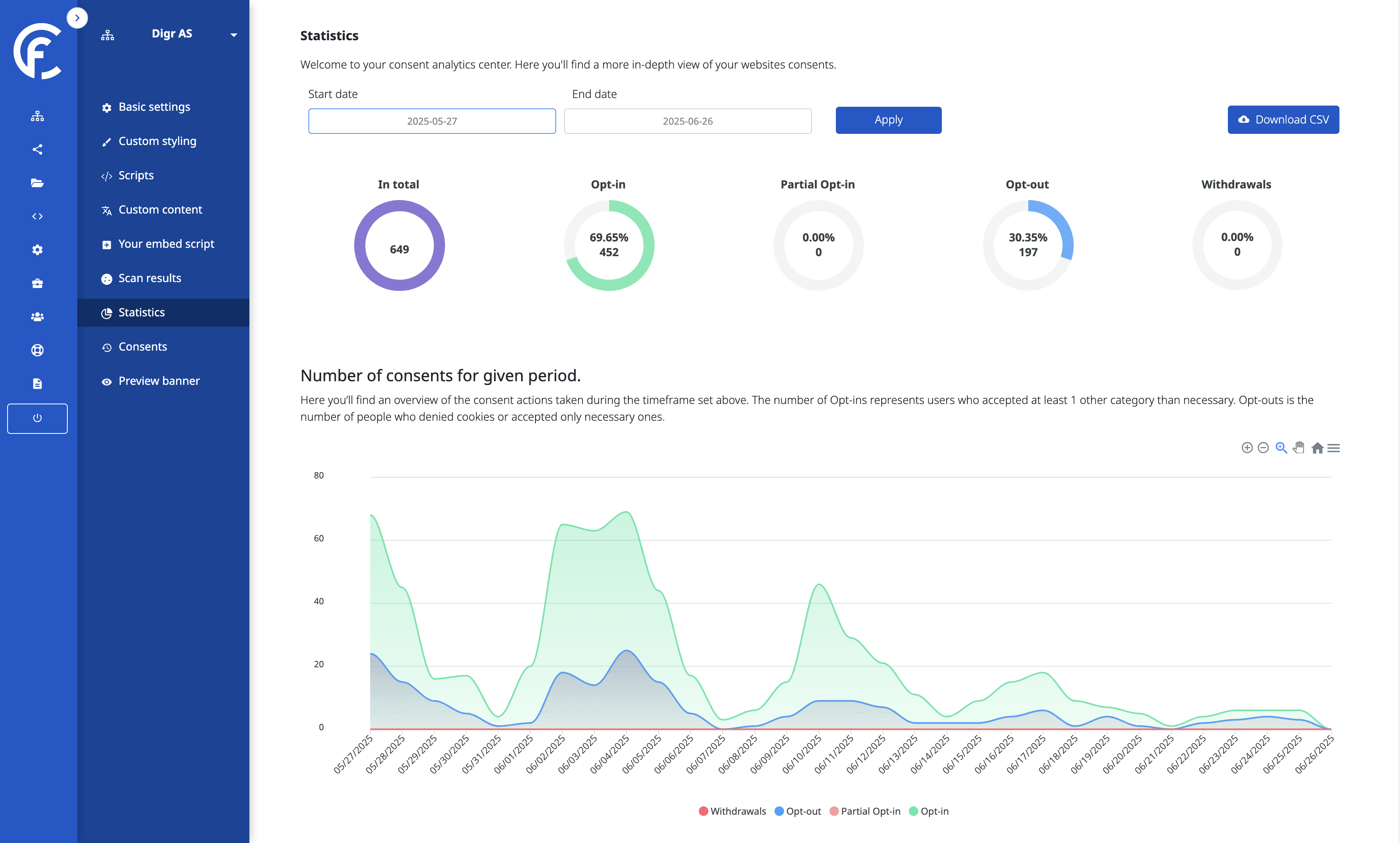 Et informasjonskapselbanner og en tydelig samtykkedialog er nå et lovpålagt krav – og en viktig del av brukeropplevelsen. Digr hjelper deg å møte disse kravene, og sørger for at alt fungerer som det skal fra første dag.